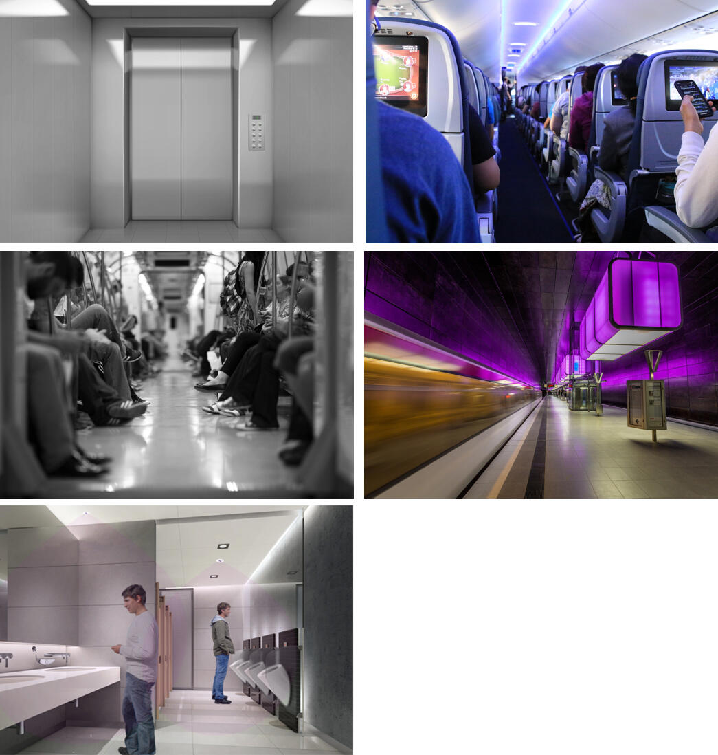 適用対象 公衆トイレ、エレベーター、航空機客室、公共交通機関、プラットフォーム