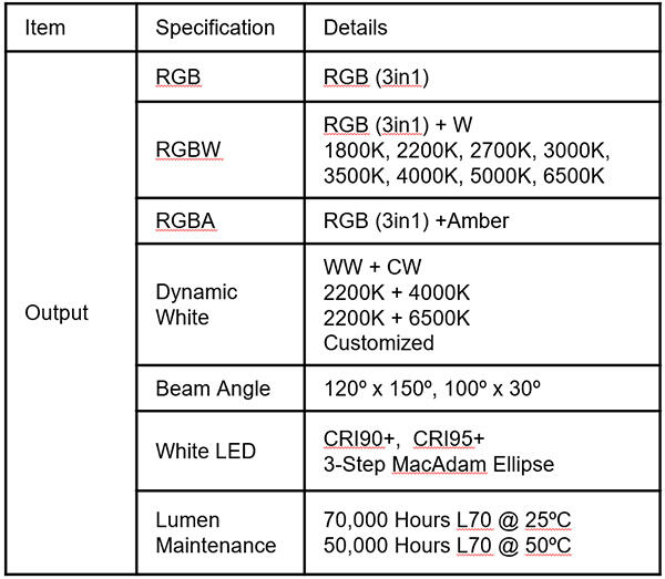 • この器具は、ワイドビーム(120º x 150º)またはミディアムビーム(100º x 30º)で利用できます。